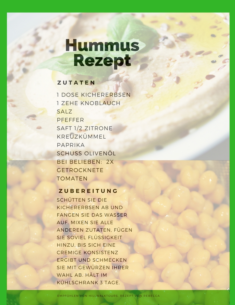 Wer es lieber pikant mag, für den sind in Stifte geschnittenes Gemüse, wie Möhren, Gurken oder Paprika ein fantastischer Snack. Zusammen mit Hummus (Kichererbsen-Paste) versorgen sie uns mit ausreichend Proteinen. Etwas Fett sorgt dafür, dass der Körper die Vitamine besser aufnehmen kann. Hummus zu machen ist ganz simpel. Erneut müssen Sie einfach nur alle Zutaten mixen und in eine fest abschließende Box füllen. Hier die pdf für den praktischen download des Rezepts.
