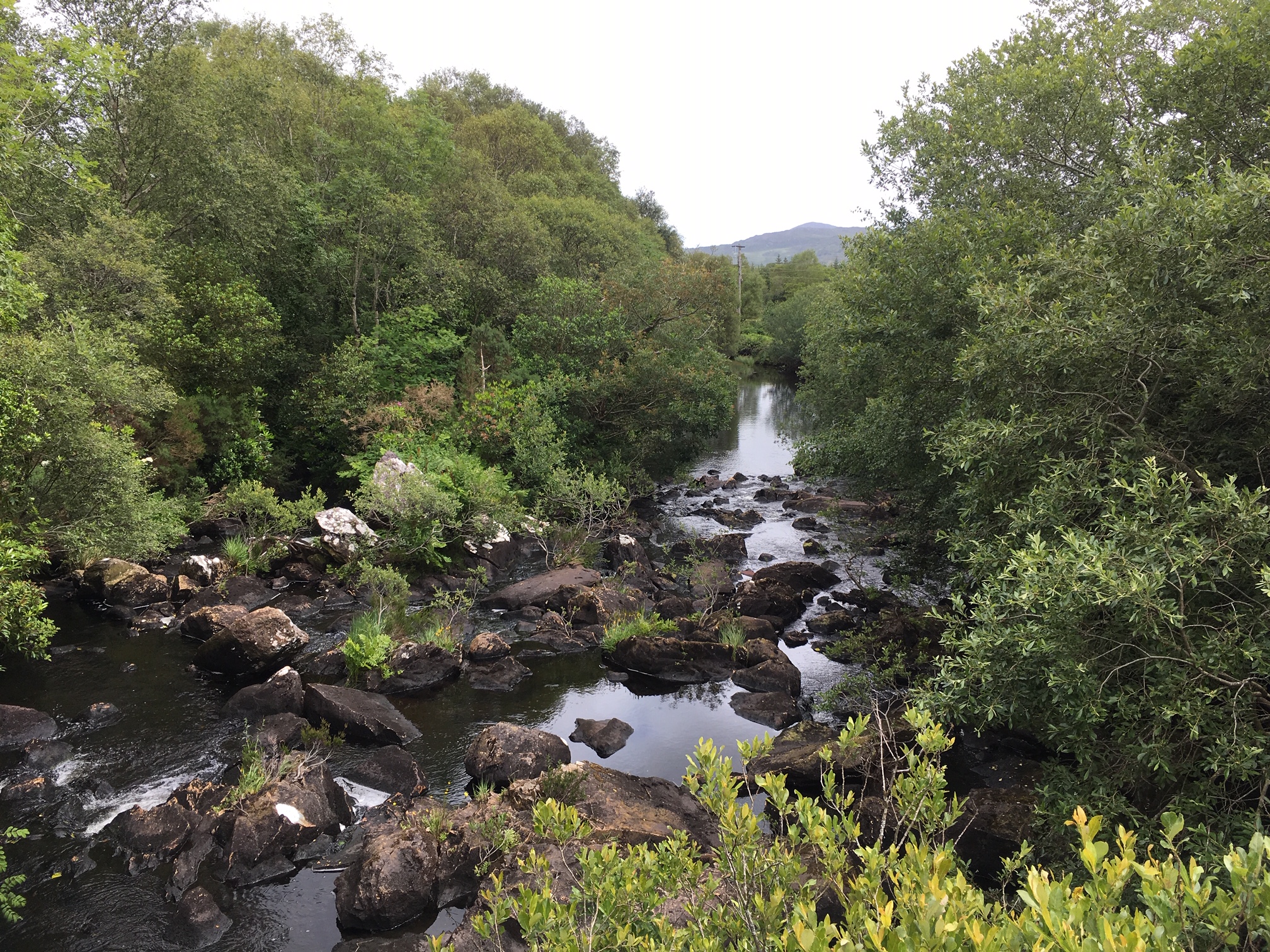 Der Kerry Way führt uns über Wiesen und Steigleitern zunächst in das stille Caragh Flusstal. Danach durchqueren wir den magischen Lickeen Eichenwald. Felsen ragen hoch über uns auf, als wir die Steinstufen im schummrigen Licht hinauf und hinab steigen.